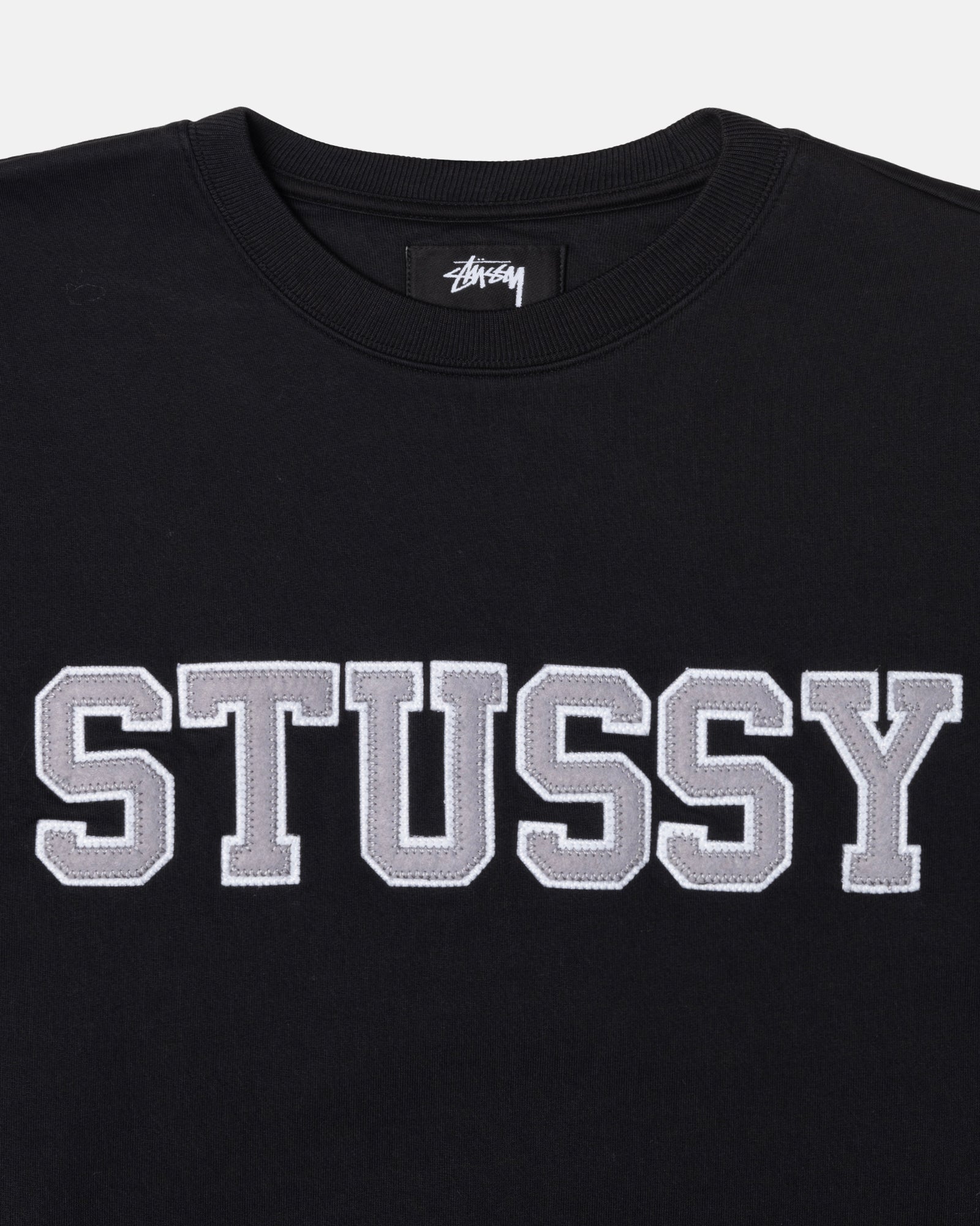 Oversized fleeceback sweatshirt with Stüssy felt appliqué.